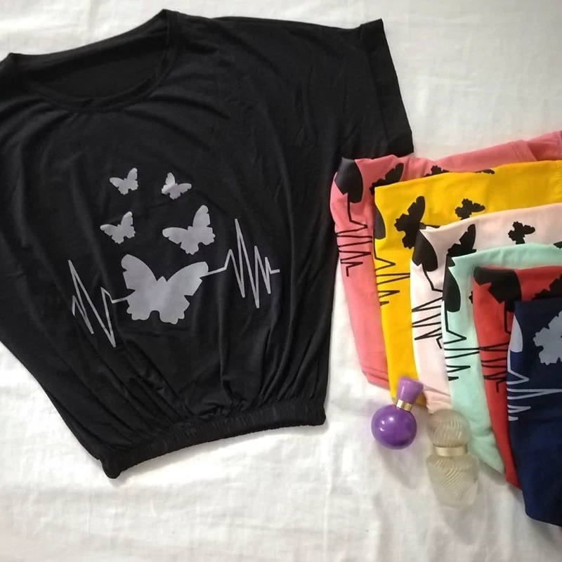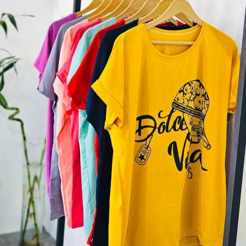 تیشرت زنانه آستین سرخود قواره دار در طرح و رنگ مختلف در گالری آنینازپوش