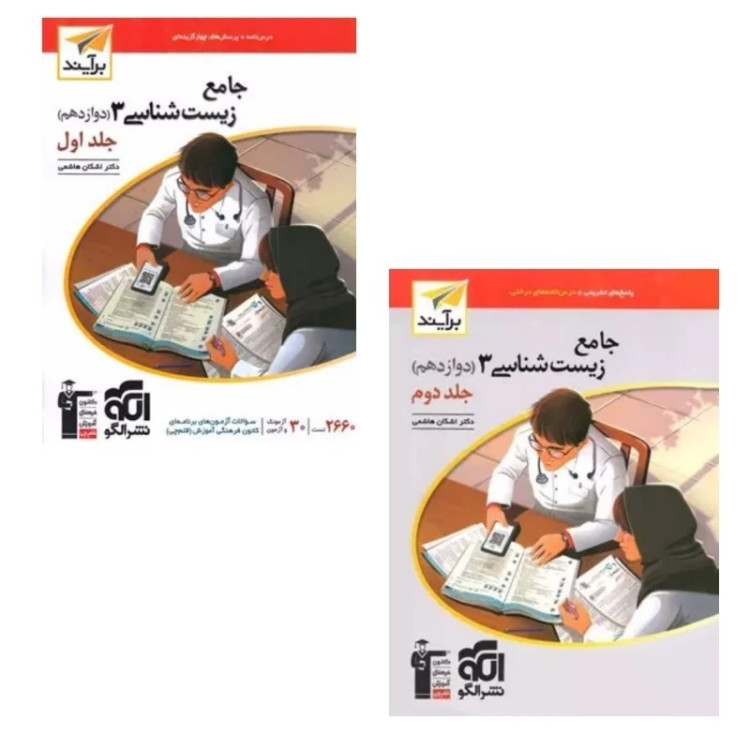 تست زیست شناسی دوازدهم تجربی جلد اول و دوم نشرالگو (جلد اول درسنامه و سوال-جلد دوم پاسخنامه تشریحی)