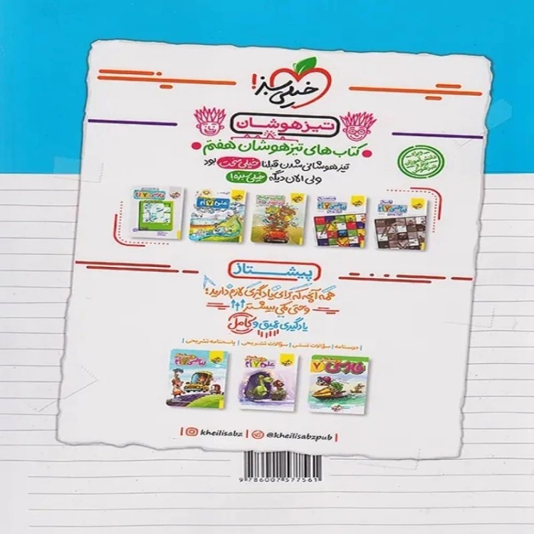 کتاب کار ریاضی هفتم خیلی سبز ، ویژه دانش آموزان مقطع هفتم دوره اول متوسطه توسط انتشارات خیلی سبز تولید و منتشر شده است. مولف کتاب پیش رو آقای هوشنگ علیمرادی و علی باقری است. کتاب کار ریاضی هفتم خیلی سبز، از مجموعه کتاب کار خیلی سبز در مقطع هفتم شامل درسنامه مختصر به صورت درس به درس مطابق با کتاب درسی جدید به همراه مجموعه تمرینهای متنوع بدون پاسخ منتشر شده است. کتاب پیش رو ویژه کار در کلاس یا منزل طراحی شده و فاقد پاسخنامه می باشد.