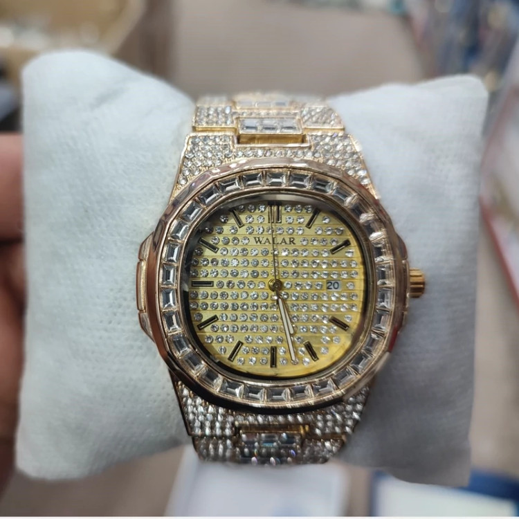 ساعت مچی فول نگین تاریخ دار قفل پروانه ای والار ( خرید عمده و تک ساعت مچی گناوه مارکت )