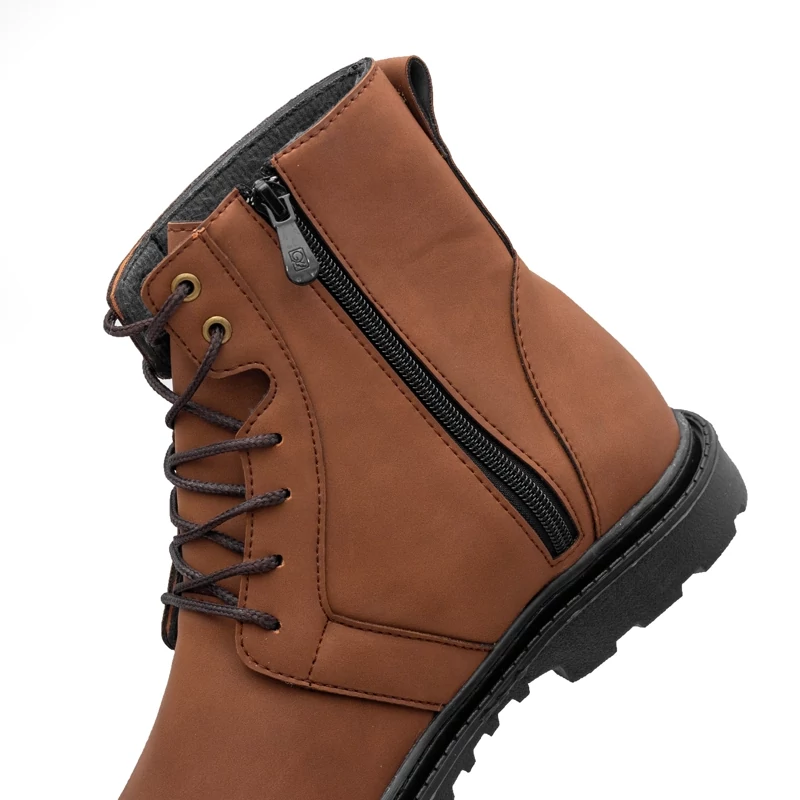 جنس این محصول از چرم مصنوعی با کیفیت بالا ساخته شده است که علاوه بر دوام، ظاهری شیک و جذاب به آن بخشیده است. ارتفاع ساق این نیم بوت 13 سانتیمتر بوده و به خوبی از پا محافظت میکند. نحوه بسته شدن کفش به صورت زیپی و بندی طراحی شده است که علاوه بر سهولت در استفاده، امکان تنظیم دقیقتر را فراهم میکند.
