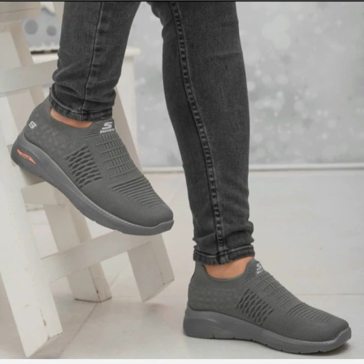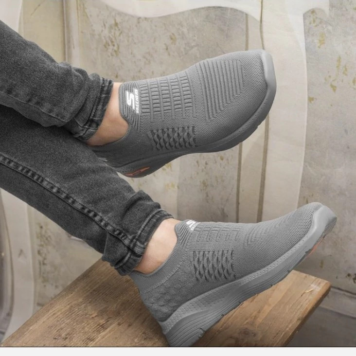 کفش پرفکت اسکیچرز بدون بند جورابی رنگ طوسی perfect
