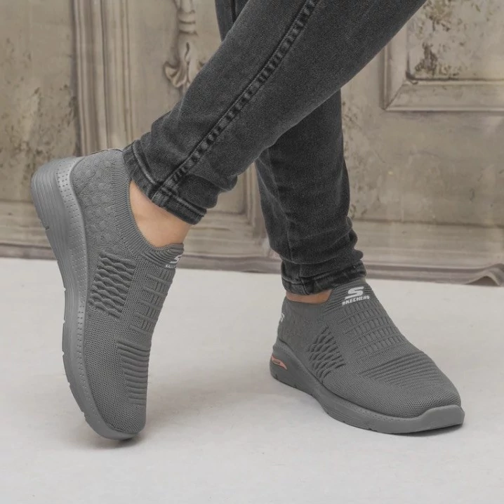 کفش پرفکت اسکیچرز بدون بند جورابی رنگ طوسی perfect