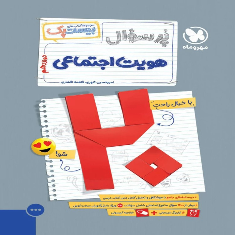 بیست پک پرسوال هویت اجتماعی دوازدهم مهروماه از سری کتابهای جدید با نام بیست پک پرسوال مهروماه ویژه دانش آموزان مقطع دوازدهم رشته ریاضی و تجربی و انسانی به قلم در انتشارات مهروماه تولید و منتشر شده است. این کتاب کمک آموزشی شامل خلاصه درسنامه کامل درس به درس مطابق با کتاب درسی جدید به همراه تعدادی سوال متنوع امتحانی از خط به خط کتاب درسی با پاسخنامه تشریحی در کنار آزمونهایی شبیه به امتحان نهایی مدارس می باشد. از ویژگیهای بیست پک پرسوال هویت اجتماعی دوازدهم مهروماه موشکافی و تحلیل متون کتاب درسی در بخش درسنامهها با هدف ارتقا و ترمیم معدل به جهت دستیابی به 60% نمره قبولی در کنکور سراسری دانشگاههاست. همچنین این بسته علاوه بر کتاب پرسوال هویت اجتماعی دوازدهم شامل دو ضمیمه رایگان کاربرگ امتحانی هویت اجتماعی و کتابچه رایگان خلاصه کپسولی (تعاریف و مثال ها) نیز می باشد. لازم به ذکر است کاربرگ های امتحانی بیست پک هویت اجتماعی دوازدهم مهروماه شامل آزمون نهایی خرداد و تابستان 1403 نیز هست.