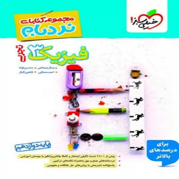 کتاب فیزیک دوازدهم تجربی پیشرفته نردبام خیلی سبز از سری کتابهای نردبام خیلی سبز، ویژه دانش آموزان و داوطلبان کنکور رشته تجربی مقطع دوازدهم، منتشر شده است. مولفان این کتاب کمک درسی آقایان احمد مصلایی، شاهین اقبال ، جمال خم خاجی و محسن توانا هستند. درسنامه های این کتاب خیلیسبز به صورت مختصر ولی کامل در 4 فصل مطابق با کتاب درسی جدید نوشته شده اند. یکی از ویژگی های این کتاب کادرهای تست و پاسخ در بخش درسنامه است که با استفاده از سوال و پاسخ و همین طور نکات تیزباشیم ، در درک بهتر مطالب به دانش آموزان عزیز بسیار کمک می کند. همچنین کتاب پر از تست های تالیفی و کنکوری استاندارد (1181 تست) با پاسخ تشریحی است.