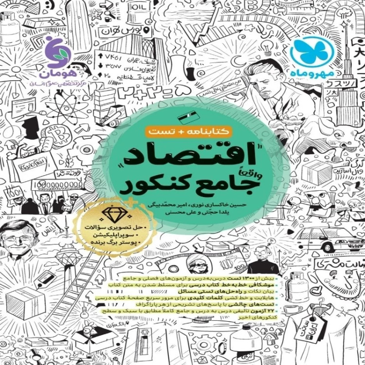 کتاب اقتصاد جامع کنکور مهروماه کتابنامه و تست از مجموعه کتابهای آموزش و تست جامع مهروماه ویژه دانش آموزان و داوطلبان کنکور رشته انسانی شامل اقتصاد دهم و یازدهم و دوازدهم به قلم حسین خاکساریان و امیر محمد بیگی و یلدا حجتی و علی محسنی تالیف و در انتشارات مهروماه تولید و منتشر شده است. این کتاب کمک درسی کنکور شامل درسنامه کامل منطبق با کتاب درسی جدید به صورت کتابنامه (صفحات کتاب درسی به همراه حاشیه نویسی های کنکوری و تکمیلی) به همراه 1251 تست طبقه بندی شده تالیفی و کنکوری استاندارد با دستهبندی موضوعی و ترکیبی به انضمام پاسخنامه تشریحی است. همچنین آموزش تصویری کلیه مباحث کتاب به صورت فیلم آموزشی با کیوآرمد در کتاب ارائه شده است. لازم به ذکر است این کتاب شامل آزمون کنکور اردیبهشت 1404 نیز هست! از ویژگیهای کتاب پیش رو ارائه آزمونهای مبحثی و جامع نیز به همراه پاسخ نامه تشریحی در کتاب آورده شده است.