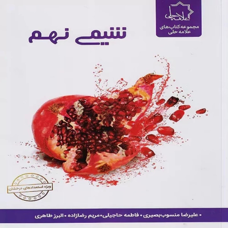 کتاب علوم نهم-شیمی- توسط انتشارات علامه حلی و تألیف علیرضا منصوب بصیری، فاطمه حاجیلی، منصور پورزمانی در112 صفحه منتشر شده است. این کتاب شامل3فصل می باشد. هر فصل شامل: · درس نامه · تمرین · پرسش های چهارگزینه ای کتاب پیشرو با توجه به سه فصل نخست کتاب علوم تجربی سال سوم دوره متوسطه اول (پایه نهم) نوشته شده است که مباحث مرتبط با شیمی را پوشش داده است. تأکید میشود که مطالب سه فصل، به همان ترتیبی که در کتاب ارایه شده، تدریس شود؛ زیرا بسیاری از مطالب فصل اول، داربستی برای مطالب فصل دوم هستند و مطالب فصل دوم هم داربستی برای فصل سوم. نحوه چینش مطالب کتاب به گونهای است که دانشآموزان با خواندن پشت سر هم مطالب آن، به تمام اهداف آموزشی کتاب درسی دست پیدا کنند و در ضمن، دید عمیقتری نسبت به هر آنچه در کتاب درسی گفته شده است؛ پیدا کنند از دیگر ویژگیهای کتاب پیشرو، توجه به کاربرد آموختهها در زندگی روزمره اجتماعی و محیط زیستی است که دانشآموز با آن تعامل دارد این کتاب بر اساس تئوریهای نوین آموزش و تجارب موفق تدریس برای آموزش طراحی شده است. درخت دانش : در صفحه دوم هر فصل نمودار دایره ای شکلی کشیده شده که به ما کمک می کند بفهمیم در آن فصل مطالب علمی چطور درسته بندی شده و ارتباط آن ها باهم چیست در واقع این بخش نقشه ای است برای گم نشدن در موضوعات علمی. پاسخگو باش : در این قسمت باید پاسخگو باشیم.پاسخگوی سوالی که پرسیده شده و انتظار می رود بعد از خواندن درس تا آن قسمت بتوانیم با کمی فکر کردن به آن جواب دهیم.