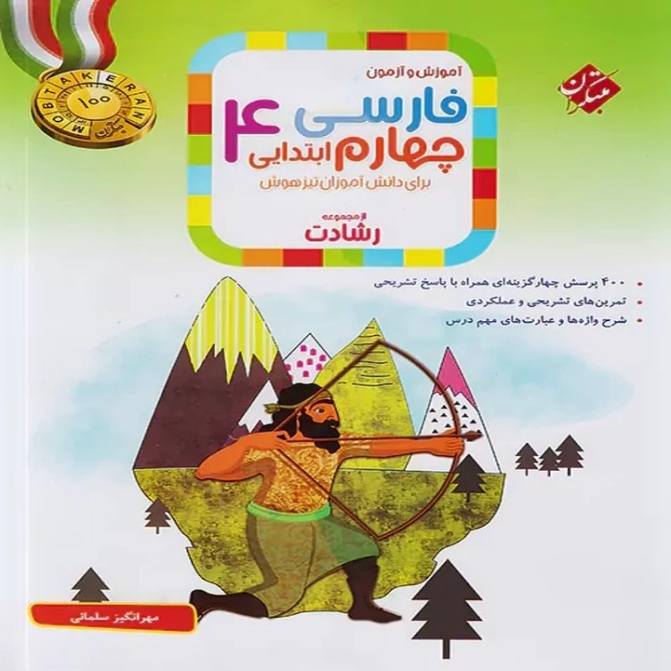 کتاب آموزش و آزمون فارسی چهارم ابتدایی رشادت مبتکران از سری کتاب های رشادت انتشارات مبتکران، توسط خانم مهرانگیز سلمانی برای استفاده دانش آموزان تیزهوش نوشته شده است. این کتاب جزو کتب پرفروش انتشارات مبتکران می باشد که تا امروز بارها به تجدید چاپ رسیده است. در کتاب چهارم ابتدایی رشادت، هدف مولف تقویت مهارت های چهارگانه زبان آموزی (خواندن، نوشتن، سخن گفتن و گوش کردن ) بوده است و در آن به آموزش نکته های زبانی – ادبی هر درس پرداخته شده است. این کتاب شامل 400 پرسش چهارگزینه ای همراه با پاسخنامه تشریحی و تمرینهای تشریحی است.