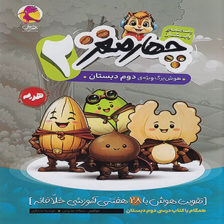 کتاب چهار مغز دوم دبستان پویش از سری کتابهای تیزهوشان دوم دبستان انتشارات پویش اندیشه خوارزمی منتشر شده است. مولفین کتاب پیش رو خانم ها سمانه مدرسی و مرضیه بختیاری می باشند. این کتاب شامل منبع آموزشی و سرگرمکننده برای دانشآموزان پایه دوم دبستان است که با هدف تقویت هوش، خلاقیت و مهارتهای ذهنی کودکان طراحی شده است. این کتاب با بهکارگیری شخصیتهای جذاب از دنیای مغزها و تصویرسازیهای رنگارنگ، انگیزه یادگیری را در کودکان افزایش میدهد و آنها را به شرکت فعال در فعالیتهای آموزشی ترغیب میکند.