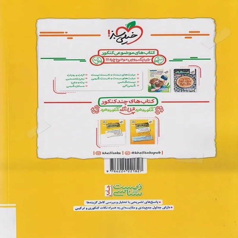 کتاب زیست شناسی جامع کنکور جلد دوم شامل درسنامه و پاسخنامه تشریحی ویزه داوطلبان کنکور کتاب رشته تجربی شامل مباحث زیست شناسی دهم ، یازدهم و دوازدهم توسط انتشارات خیلی سبز به چاپ رسیده است. مولفین این کتاب گروه آموزشی ماز ، دکتر پوریا خیراندیش و دکتر فرزام فرهمندنیا می باشند. کتاب زیست شناسی جامع پینوکیو خیلی سبز یکی از پرفروش ترین منابع درس زیست شناسی کنکور می باشد که با استقبال بینظیری از طرف داوطلبان کنکور رشته تجربی روبرو شده است. این مجموعه دو جلدی شامل زیست شناسی جامع کنکور ماز جلد اول ( تست های چهارگزینه ای ) و زیست جامع خیلی سبز جلد دوم (پاسخنامه تشریحی) می باشد.
