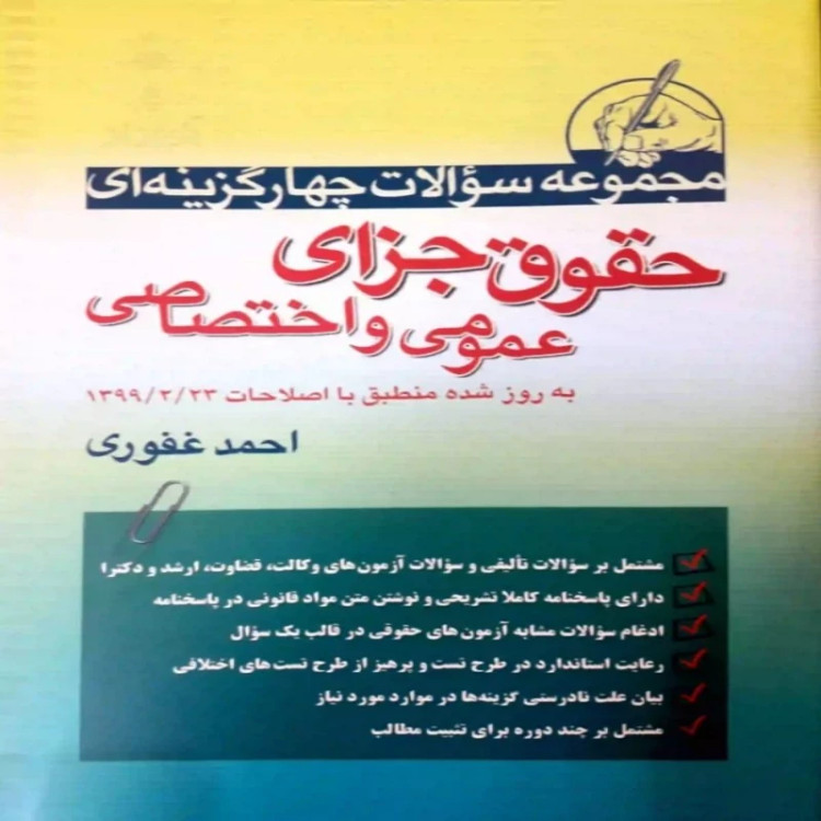 کتاب مجموعه سوالات چهار گزینه ای حقوق جزای عمومی و اختصاصی احمد غفوری